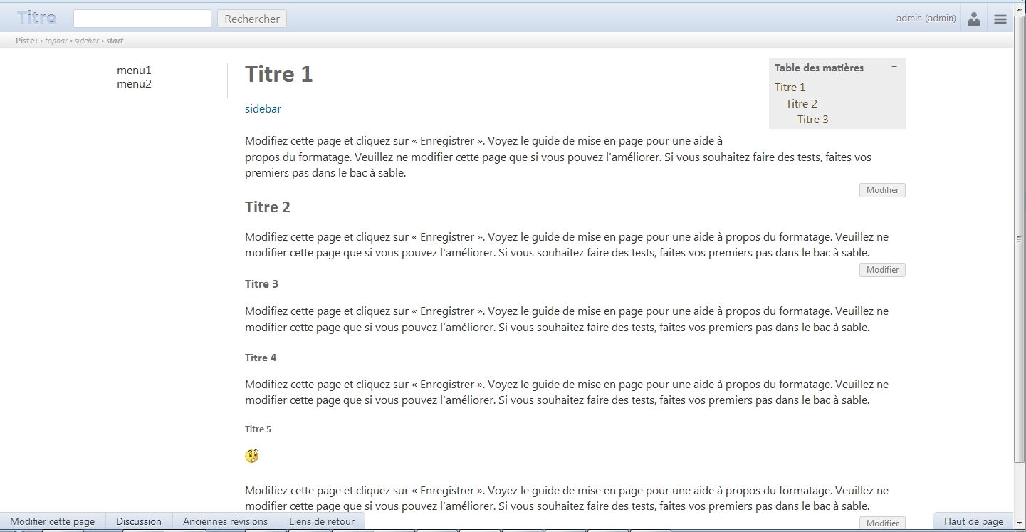 Par défaut, c'est la page [[sidebar]] à la racine (il faut la créer, elle n'existe pas par défaut). Peut se changer dans les paramètres de base de Dokuwiki.